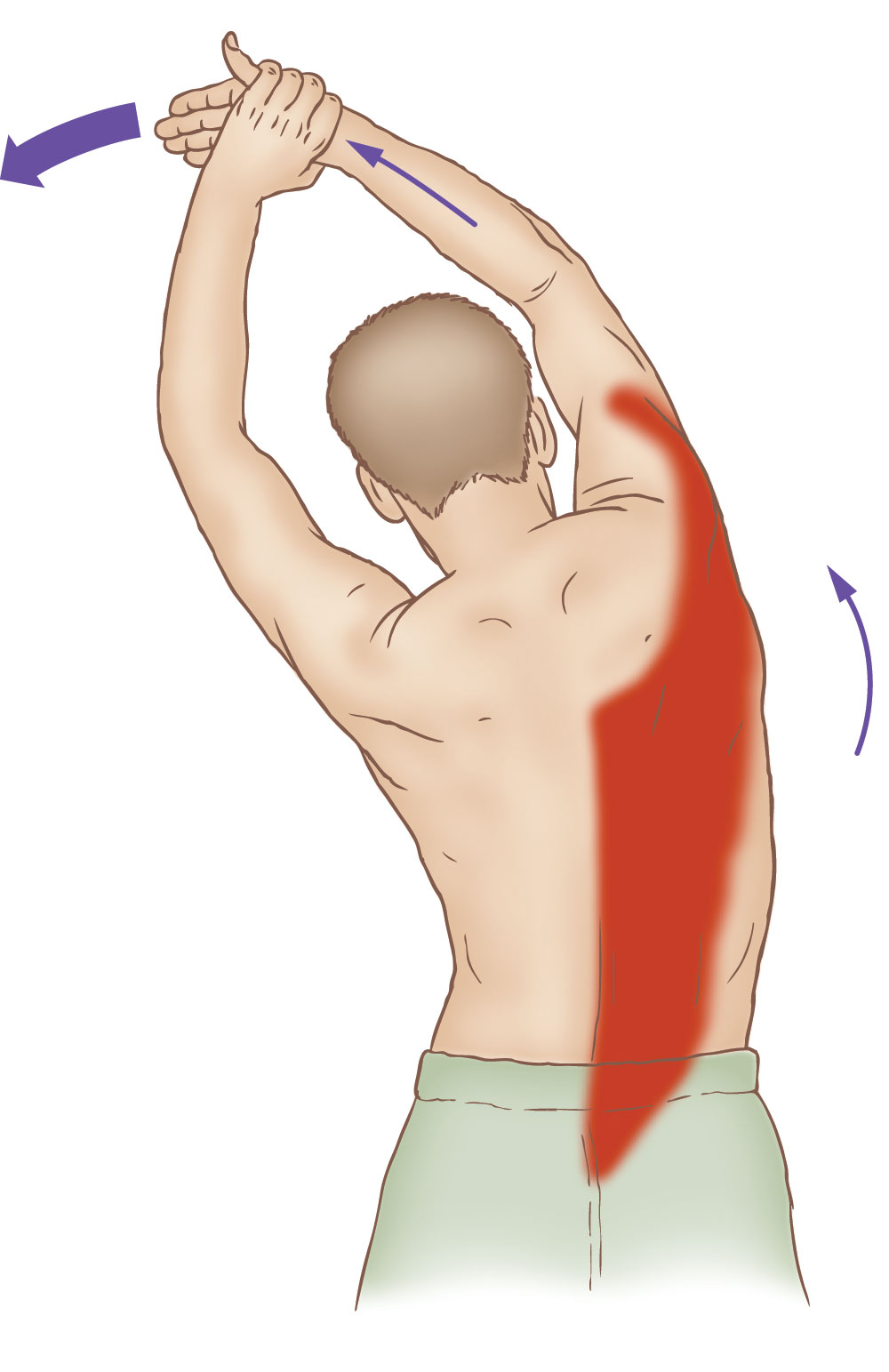 | Functions | Shoulder joint: Arm internal rotation, Arm adduction, Arm extension; Assists in respiration |